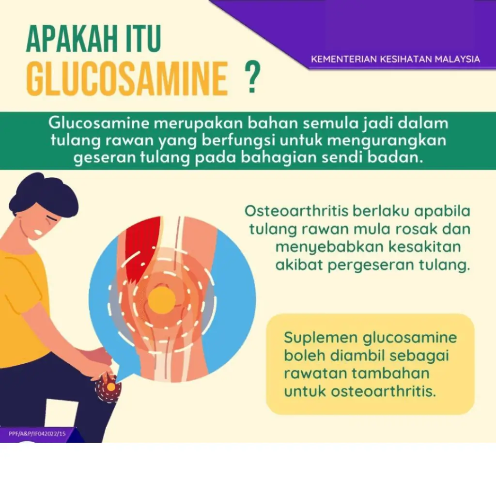 Glucosamine merupakan bahan semula jadi dalam tulang rawan yang berfungsi untuk mengurangkan geseran tulang pada bahagian sendi badan